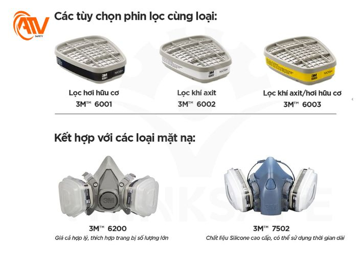 - Khả năng lọc vượt trội với các mã như 6001 (lọc khí hữu cơ), 6006 (lọc đa khí), 2091 (lọc bụi mịn P100)