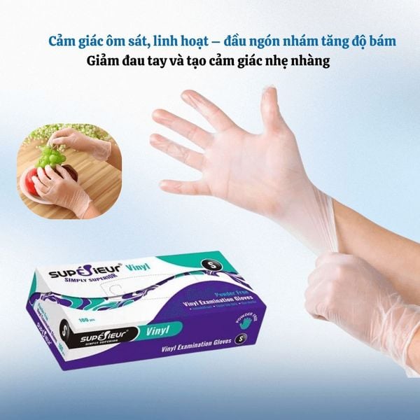Đảm bảo vệ sinh tối ưu với Găng Tay Thực Phẩm Không Bột Vinyl Supérieur, an toàn và dễ sử dụng