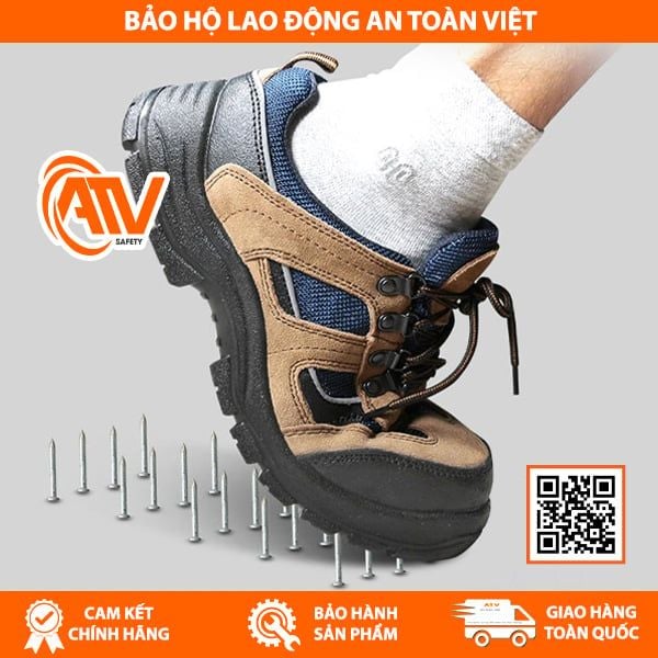 Mũi thép: Chịu lực va đập 200J và lực nén 1500kg, bảo vệ ngón chân khỏi bị dập nát bởi các vật nặng rơi hoặc va đập mạnh.