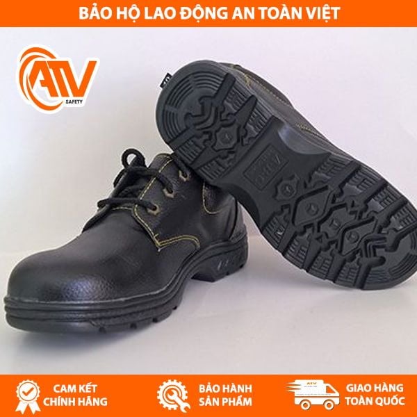 Giày bảo hộ ABC váng 2 được làm từ da bò chống thấm, chống trơn trượt và đâm xuyên được sử dụng phổ biến trong môi trường xây dựng.